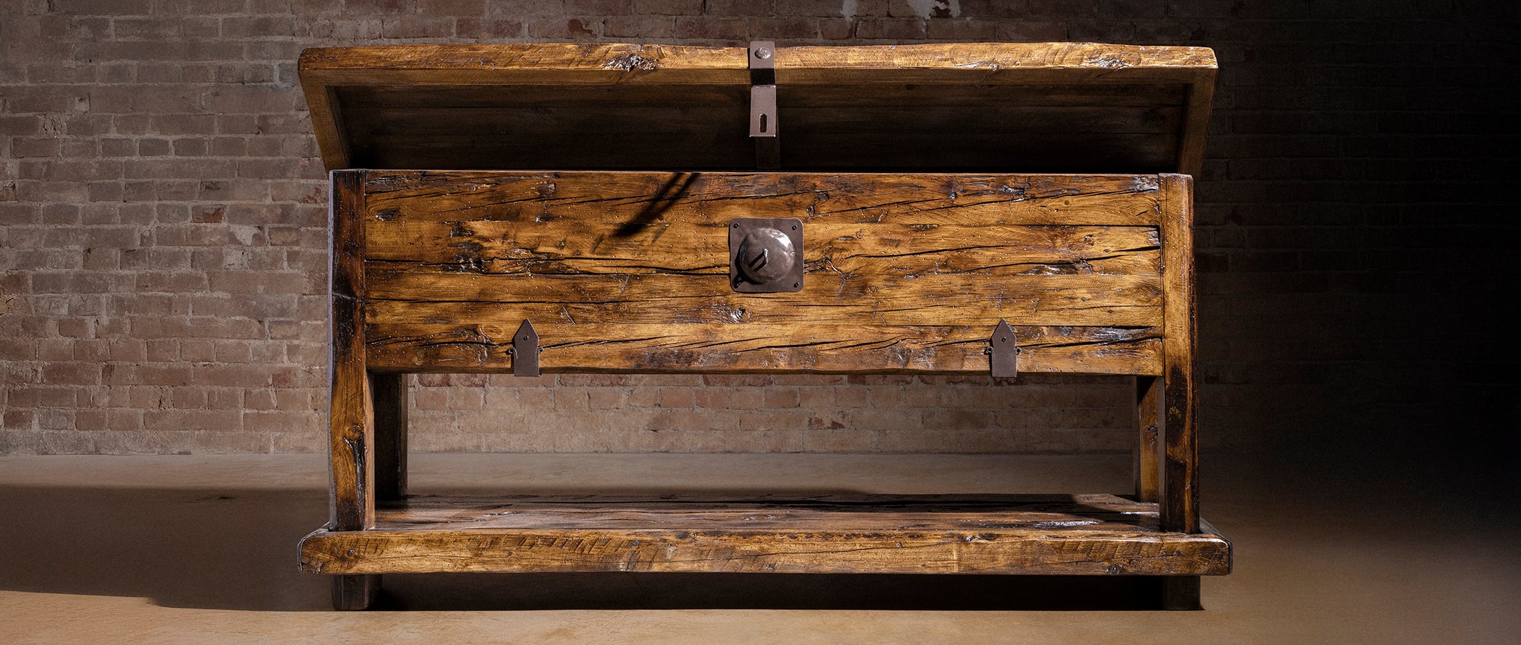 Hidden storage. Old-soul timber. Iron with frontier authority.